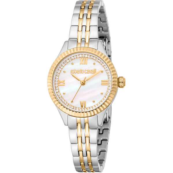 En el mundo de la moda, donde la elegancia se encuentra con la precisión, surge un reloj que captura la esencia de la sofisticación y el estilo. Fabricado en el corazón de la relojería suiza, este reloj Roberto Cavalli Lady es un testimonio de diseño refinado y atractivo atemporal. Su caja redonda, bañada en un lustroso gris plateado, mide delicadamente 28 mm, complementando perfectamente la muñeca elegante de la mujer moderna. La correa de acero inoxidable, también en un gris plateado a juego, se envuelve alrededor de la muñeca con una elegancia sin costuras, asegurada por un cierre desplegable de mariposa con botón pulsador para facilidad y comodidad. Bajo el cristal mineral se encuentra una esfera blanca ostra, un lienzo de pureza y gracia, donde tres manecillas bailan en armonía, impulsadas por el fiable movimiento de cuarzo GL32. Con una resistencia al agua de hasta 50 metros, este reloj no es solo una declaración de moda, sino un compañero para las aventuras de la vida. La corona de tirar y empujar añade un toque de encanto clásico, invitando a quien lo lleva a interactuar con el tiempo mismo. Este reloj Roberto Cavalli es más que un accesorio, es una celebración de la feminidad y la moda, una pieza que habla al corazón de quienes se atreven a abrazar la elegancia en cada momento.